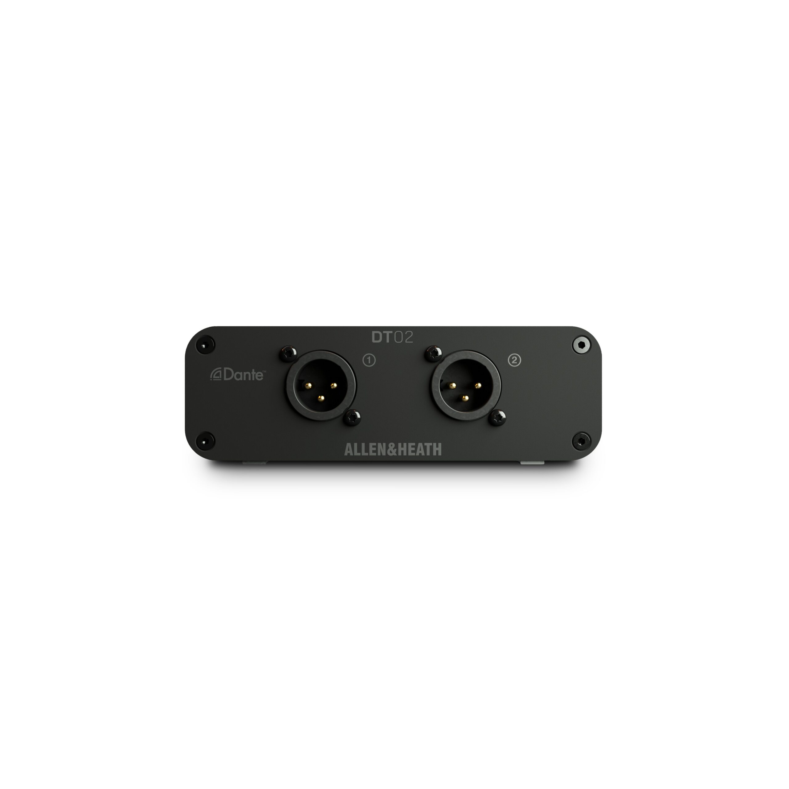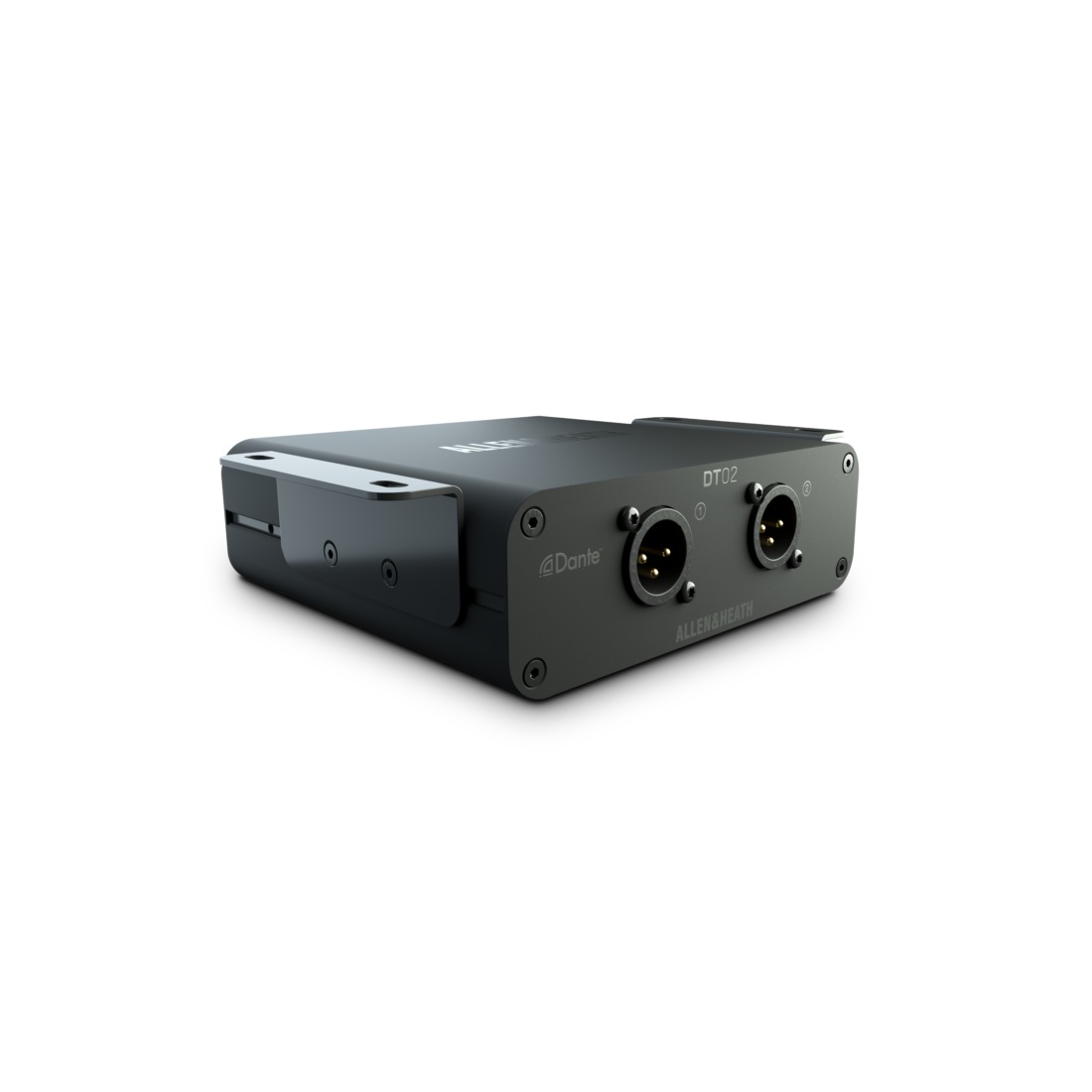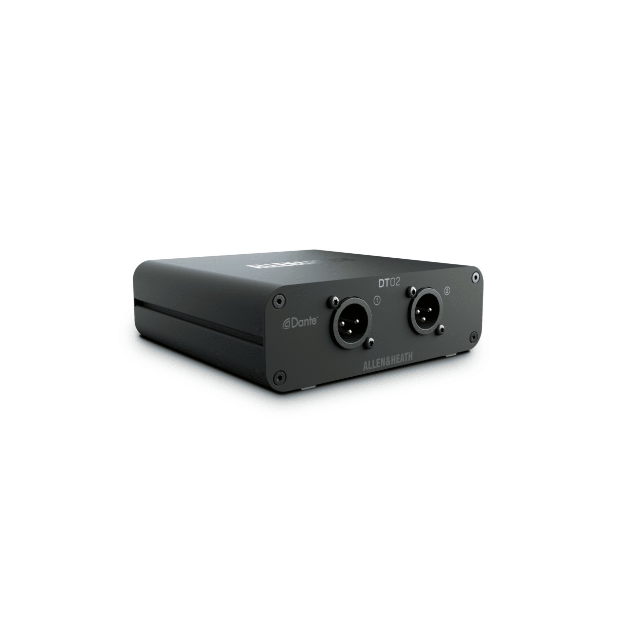 DT02 is a cost-effective, compact 48kHz/96kHz Dante interface enabling 2x XLR outputs wherever you need them on your Dante network. Ideal for a wide variety of fixed installation and AV hire / portable applications, DT02 can be used with any Dante-equipped Allen & Heath mixer or AHM system, as well as with third party Dante systems.