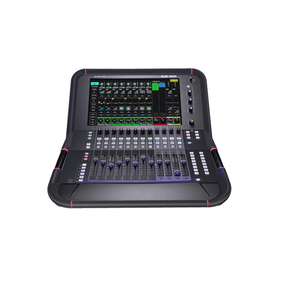The Allen & Heath Avantis Solo digital mixer was built to revolutionize the way you mix live sound. Equipped with the same dLive technology as Allen & Heath’s flagship mixers, the Avantis Solo is a 64-channel / 42-bus compact console that strikes the perfect balance between old-school analog mixing and cutting-edge digital processing. Those who love analog mixers will appreciate the 12 channel strips complete with manual faders and PAFL switches. The unit has a 15.6-inch DSP touchscreen that offers gesture control, fully customizable routing options, and 72 fader strips (12 faders, six layers). Whether it’s handling a few mic connections or synchronizing gear with the word clock and connecting to a Dante network, the Avantis Solo can handle all your live sound needs.