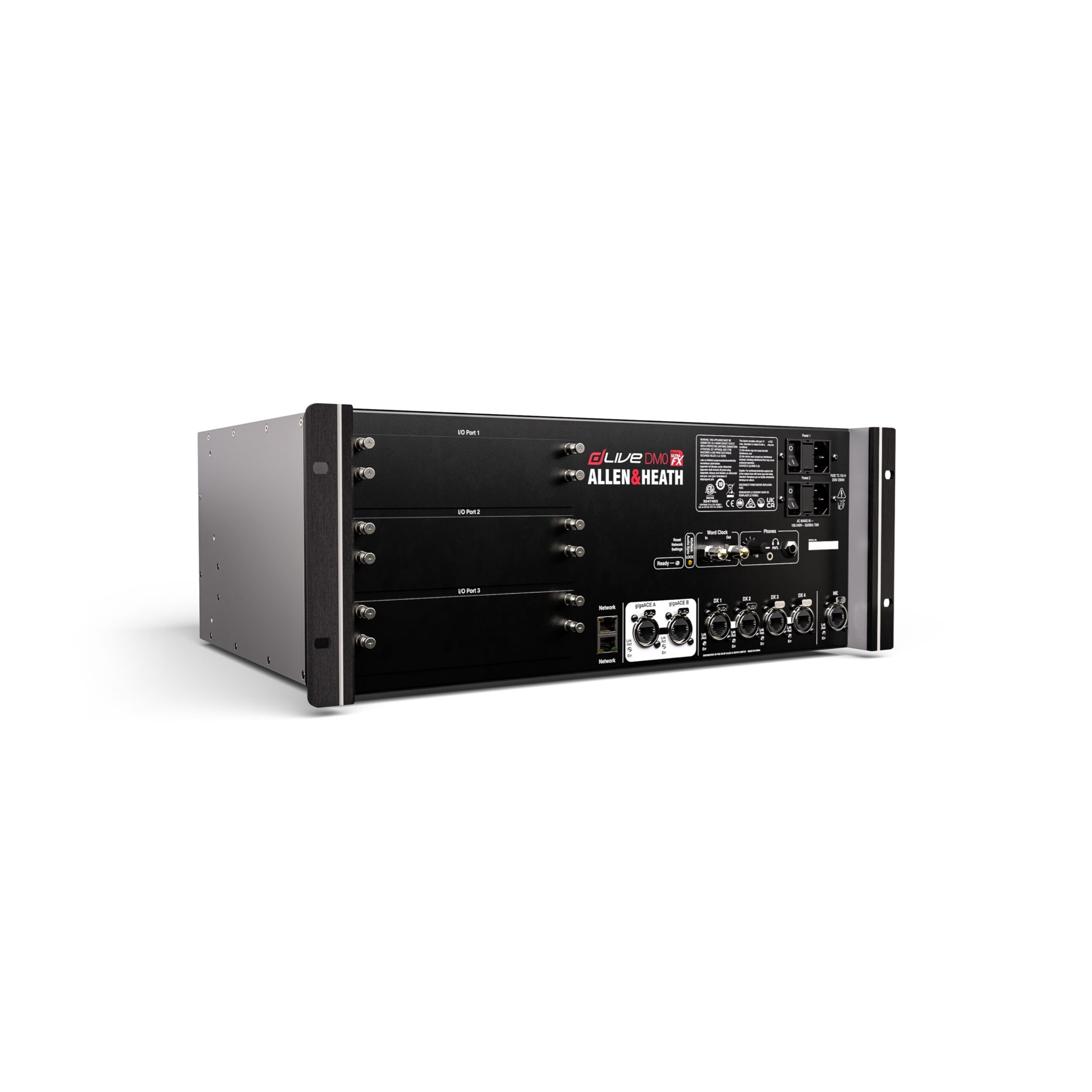 At just 4U, DM0 is the most compact dLive MixRack and is targeted at distributed audio scenarios and digital splits. It houses the XCVI processing core complete with audio I/O, control and audio networking ports. It can be controlled with a dLive Surface, using a laptop or iPad, Allen & Heath IP remotes or third party controllers via TCP/IP.