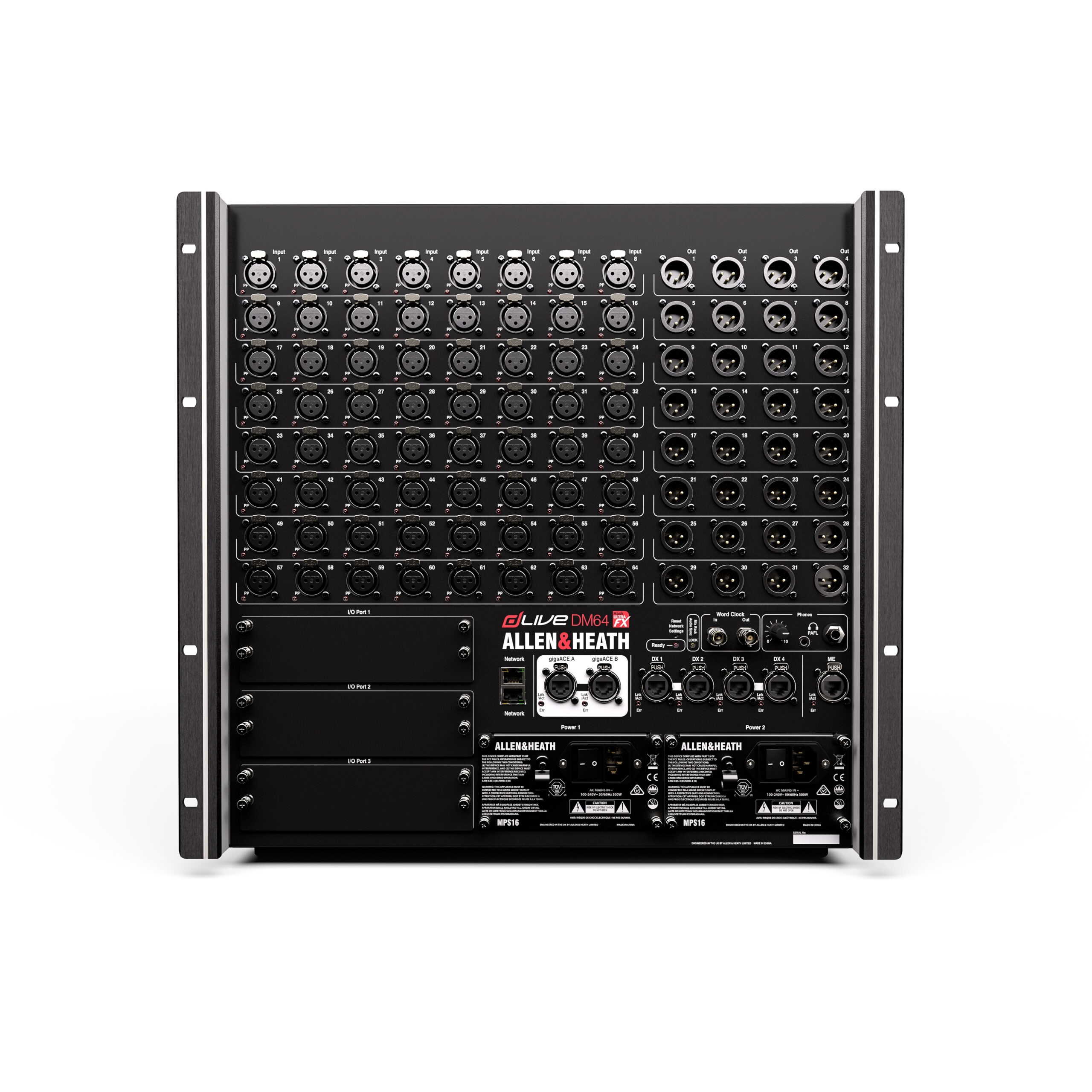 - 64-in/32-out digital MixRack with 16 stereo effects returns