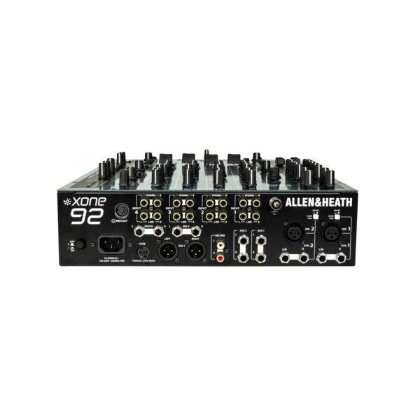 What’s more, the phono preamps were updated to utilize the enhanced topology that the limited-edition Mk1 model used. These RIAA preamps reinforce the aural aesthetics that defined the original while bolstering the sweet spots to faithfully preserve and reproduce every nuance of vinyl-only DJ sets. Finally, the Xone:92 Mk2 implements a Clean Feed bus for its dual mic inputs, adding switches to the mixer’s rear panel that let you toggle whether the microphone signal is routed to both the Booth and Record outputs or skips them altogether.