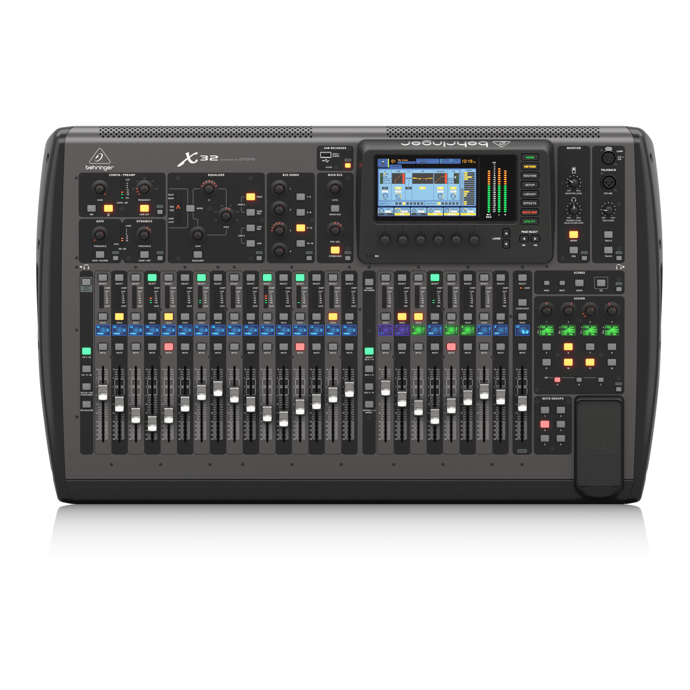 - 32 Midas-designed, fully programmable mic preamps for audiophile sound quality