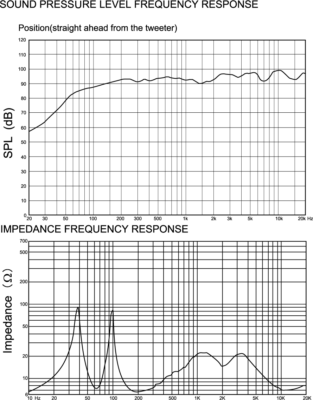 | Speaker unit | LF Unit:250mm(10.0″) Cone, 65mm(2.6″) Voice Coil×1 HF Unit:25mm(1.0″) Throat, 34.4(1.3″)mm Voice Coil× 1 |