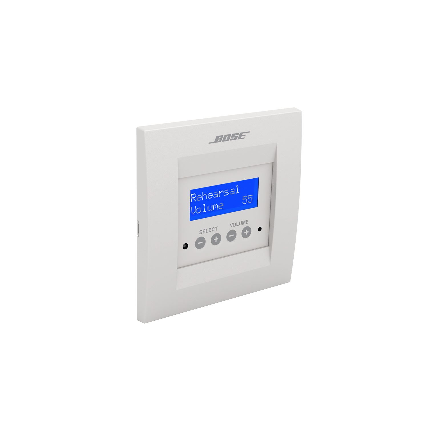 The Bose Professional ControlSpace CC-16 zone controller is an elegant wall-mounted device designed to provide end-user control of ControlSpace systems. Custom programming allows the CC-16 to control a variety of system elements, from switching remote audio sources to selecting “scenes” or system configurations. The CC-16 features a bitmap LCD and four buttons for displaying and controlling the system settings.
