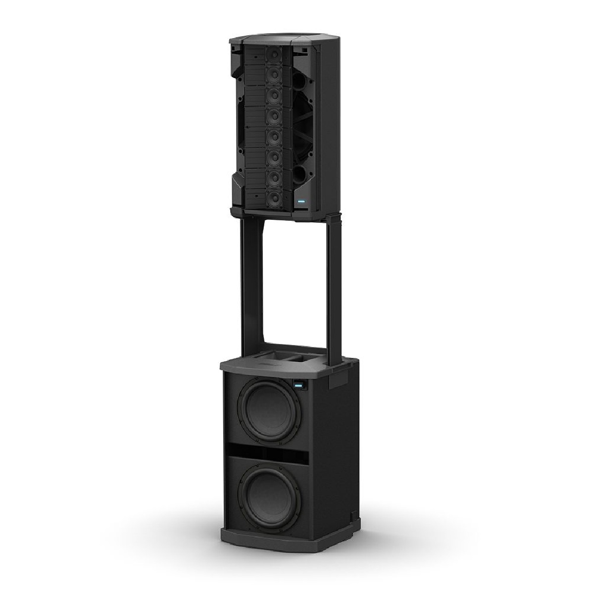 - Two high-excursion drivers, each measuring 10 inches, are built into a compact enclosure that is light and easy to transport