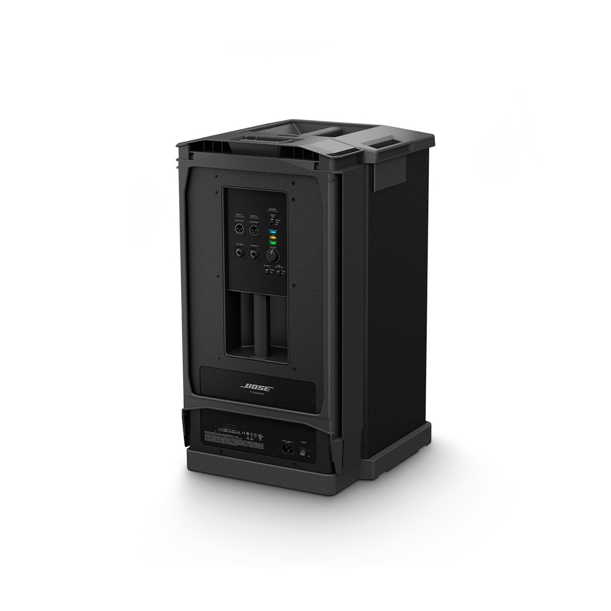 With 1,000 watts of power, the Bose® F1 Subwoofer packs all the performance of a larger bass box into a more compact design that’s easier to carry and fits in a car. A mounting stand for the Bose F1 Model 812 Flexible Array Loudspeaker is integrated right into the body of the subwoofer, so you always know where it is, making setup fast and easy. The stand even includes cable channels to neatly hide the wires, giving your system a clean, professional look. And now getting your unit to the venue is easier, too. The F1 Subwoofer features strategically placed handles for easy transport.