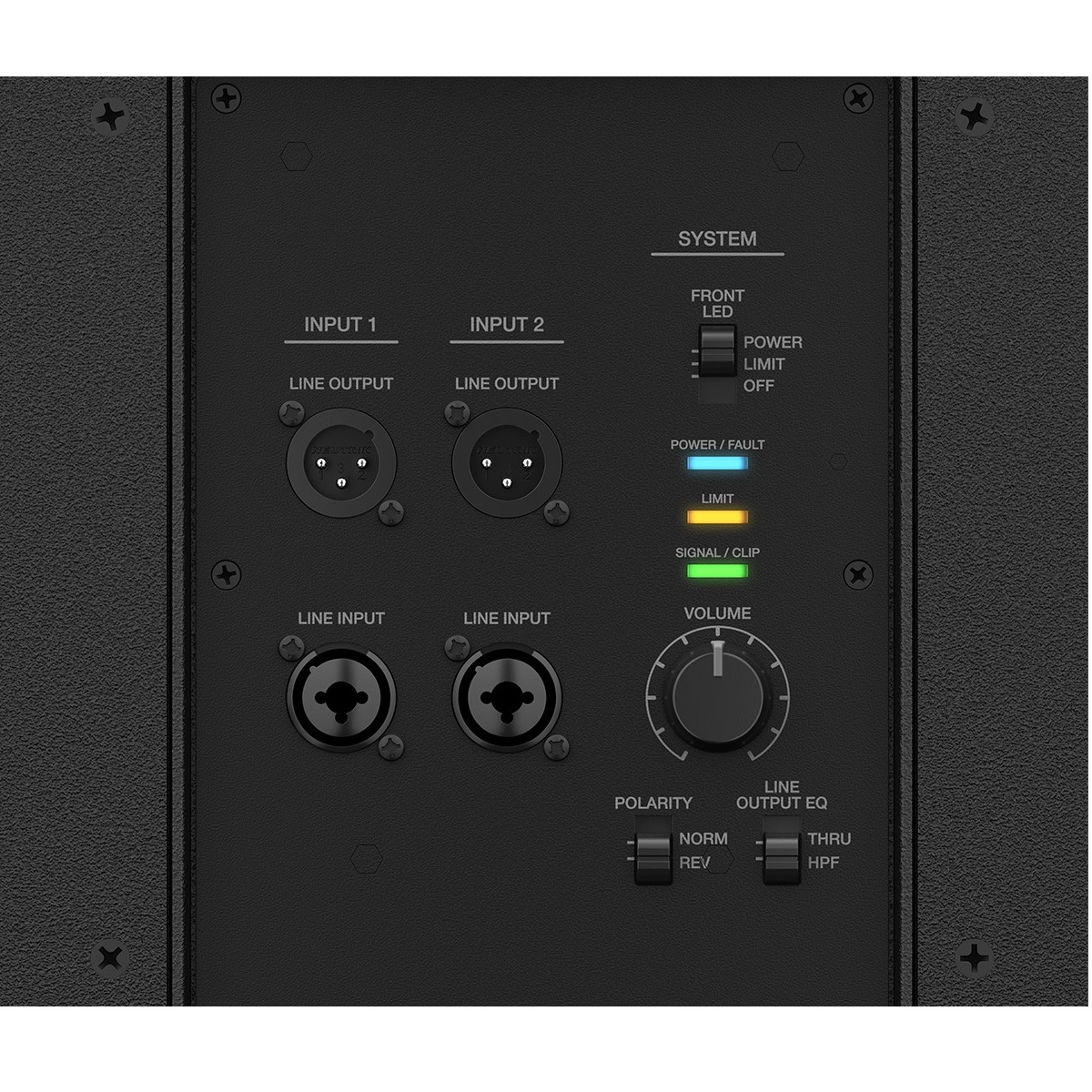 - Line output EQ sets the F1 Subwoofer’s output to a high-pass filter or full range, which allows for easy crossover selection when used with a main loudspeaker