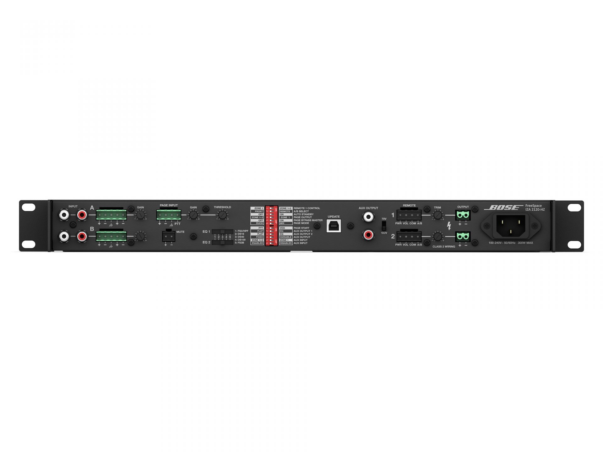 - 2 × 120 W at 70V, 100V / 2 dBu (auxiliary)
