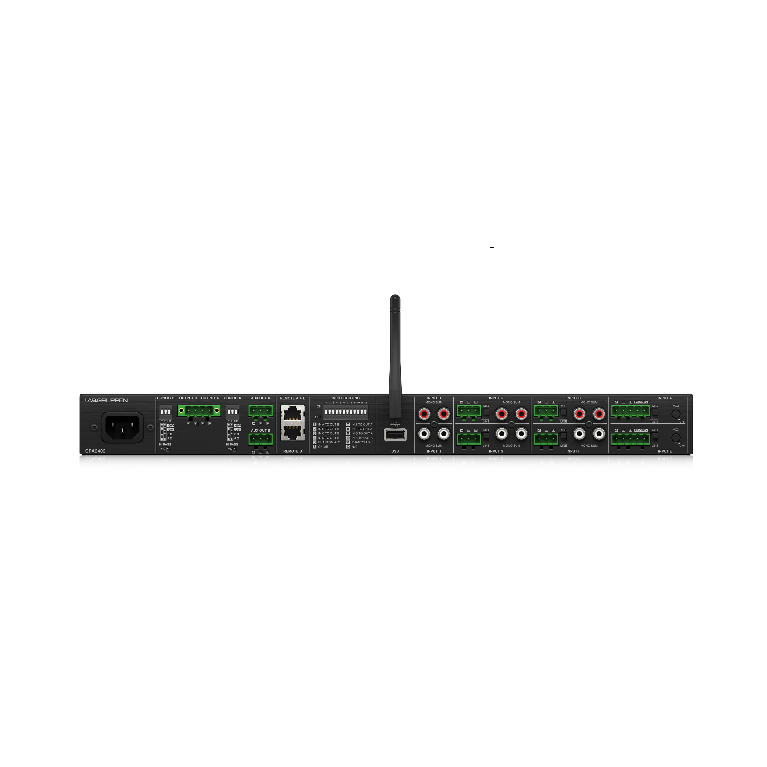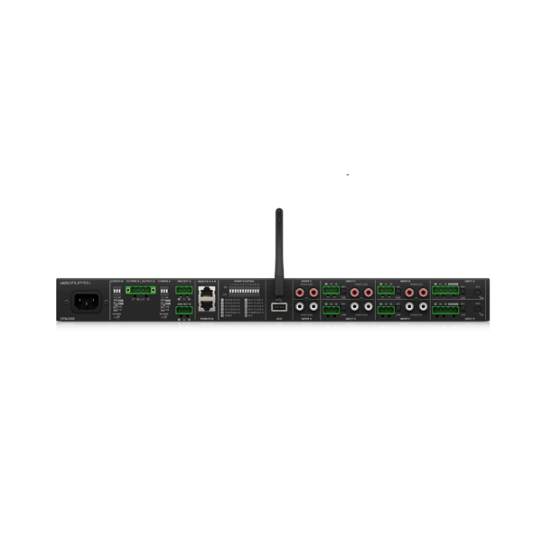 | Rear | Load config – (4 Ω/8 Ω/70 V/100 V), switchable 80 Hz high-pass filter, mic/line switch, vox/ducking threshold control, phantom voltage, input routing (2-channel models only) |
