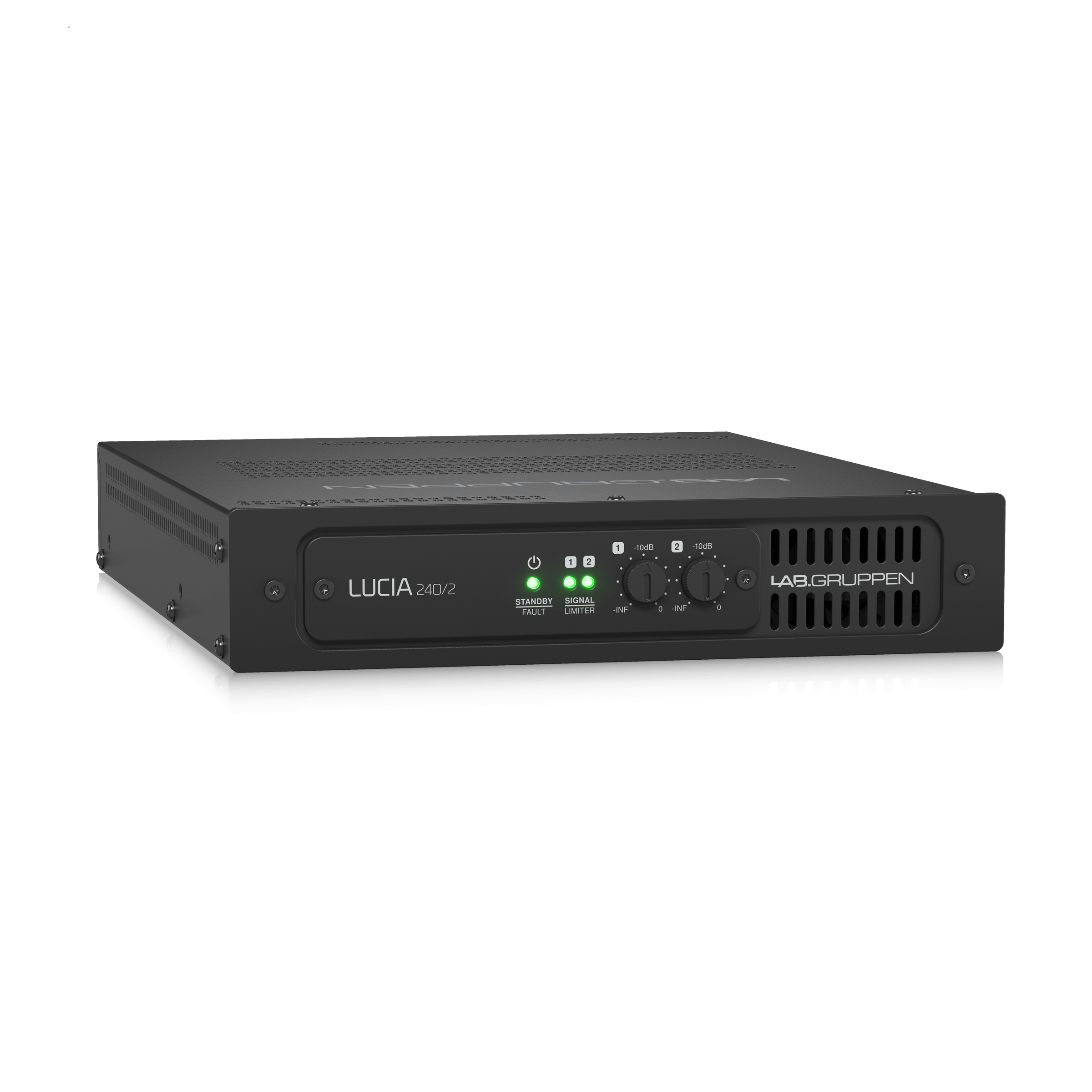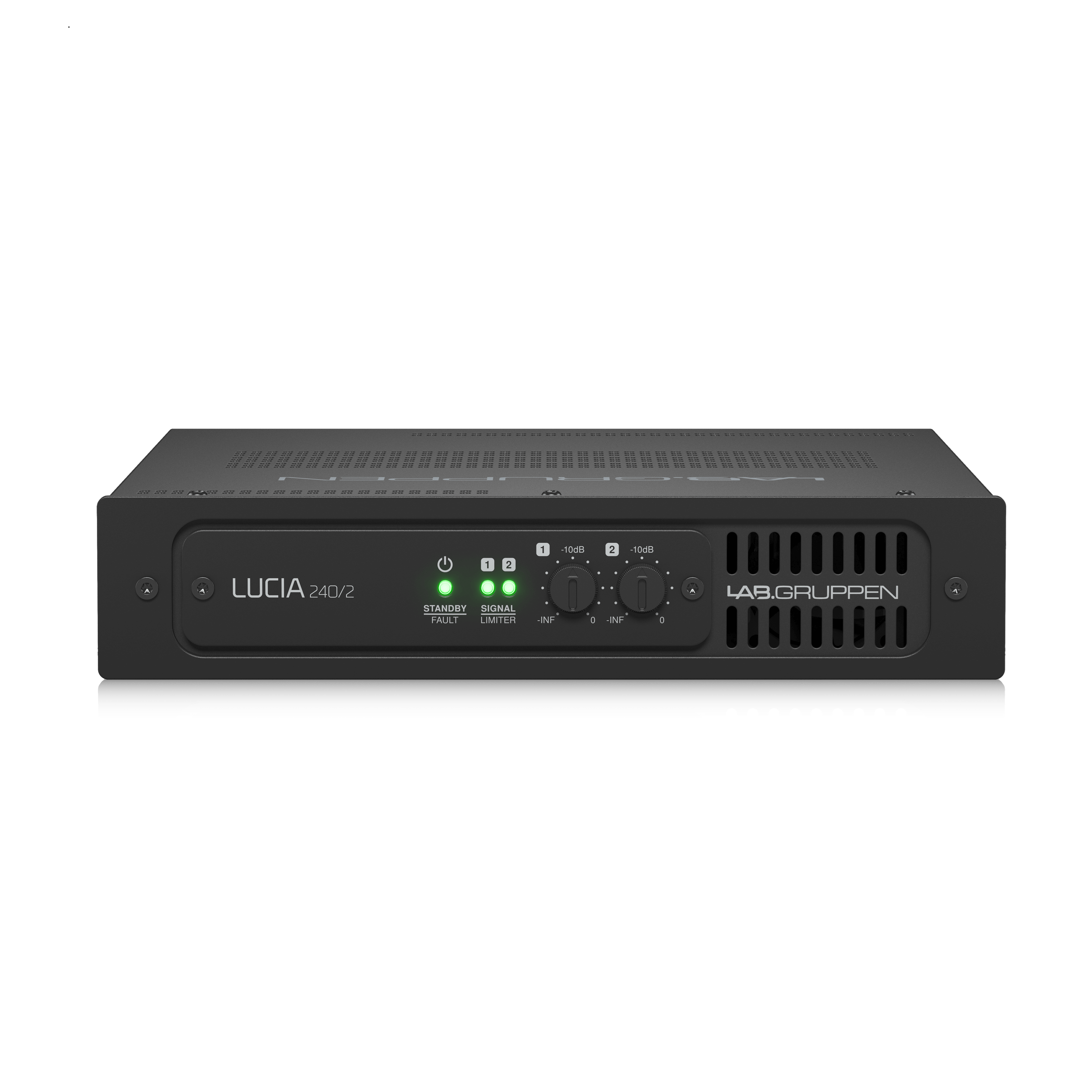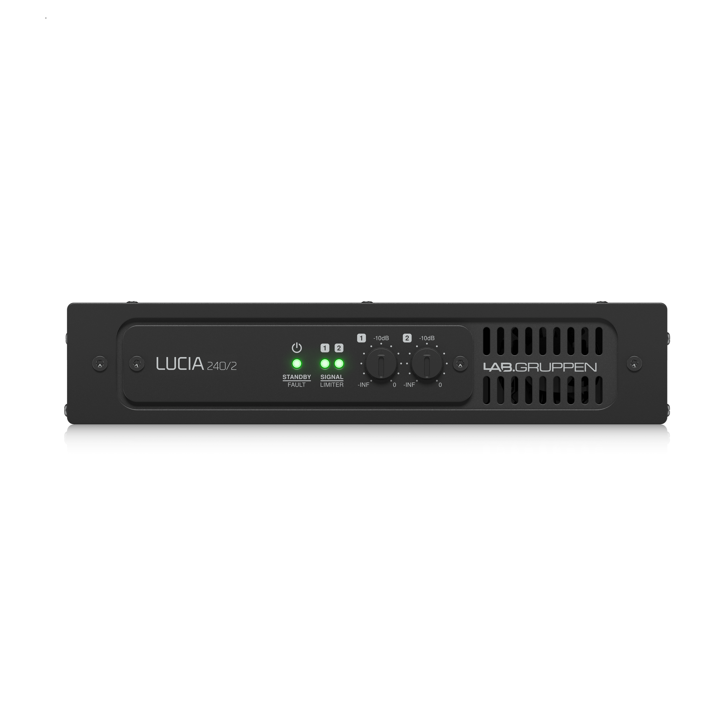 | Level adjustment (per channel) 3 | Front panel potentiometer, detented from -inf to 0 dB |