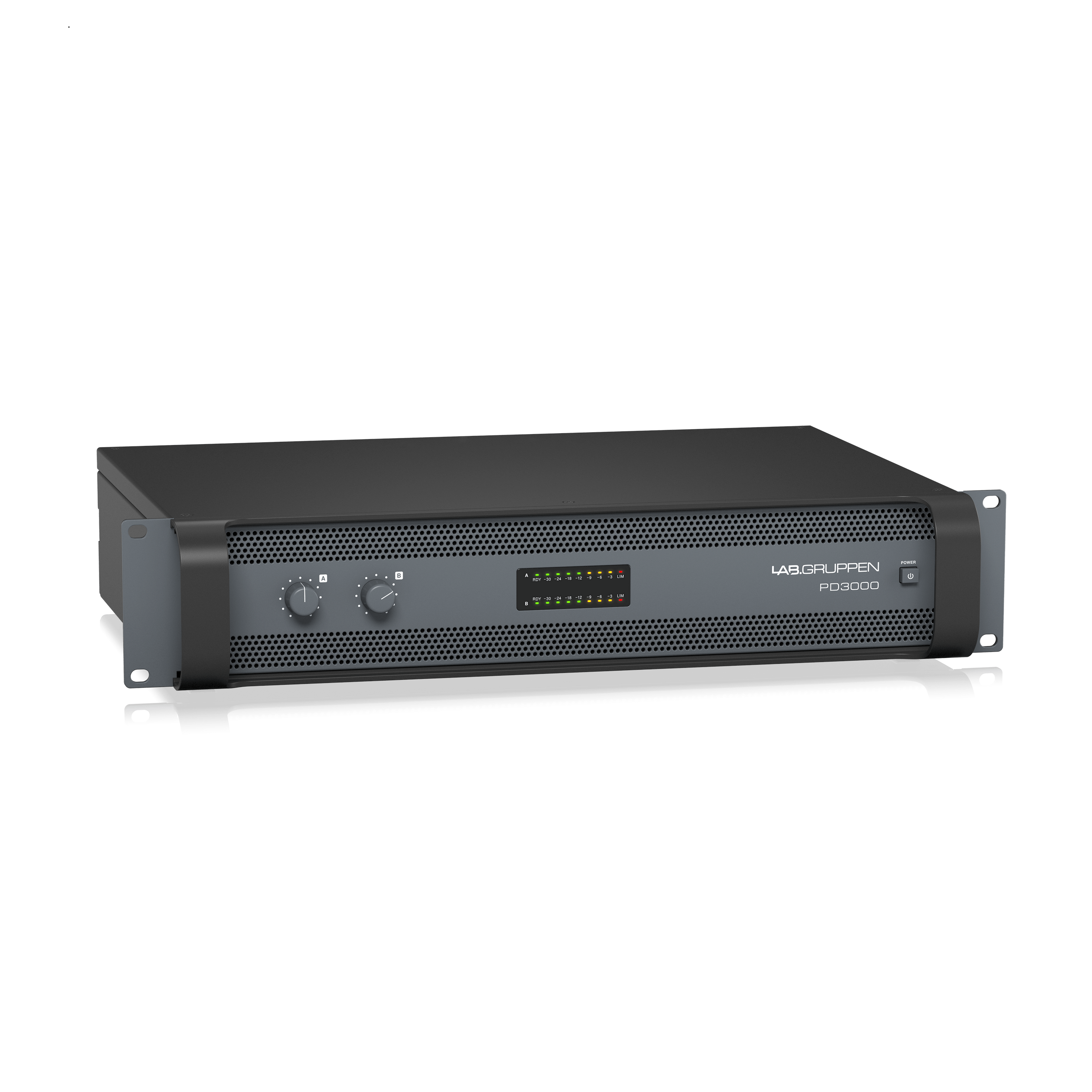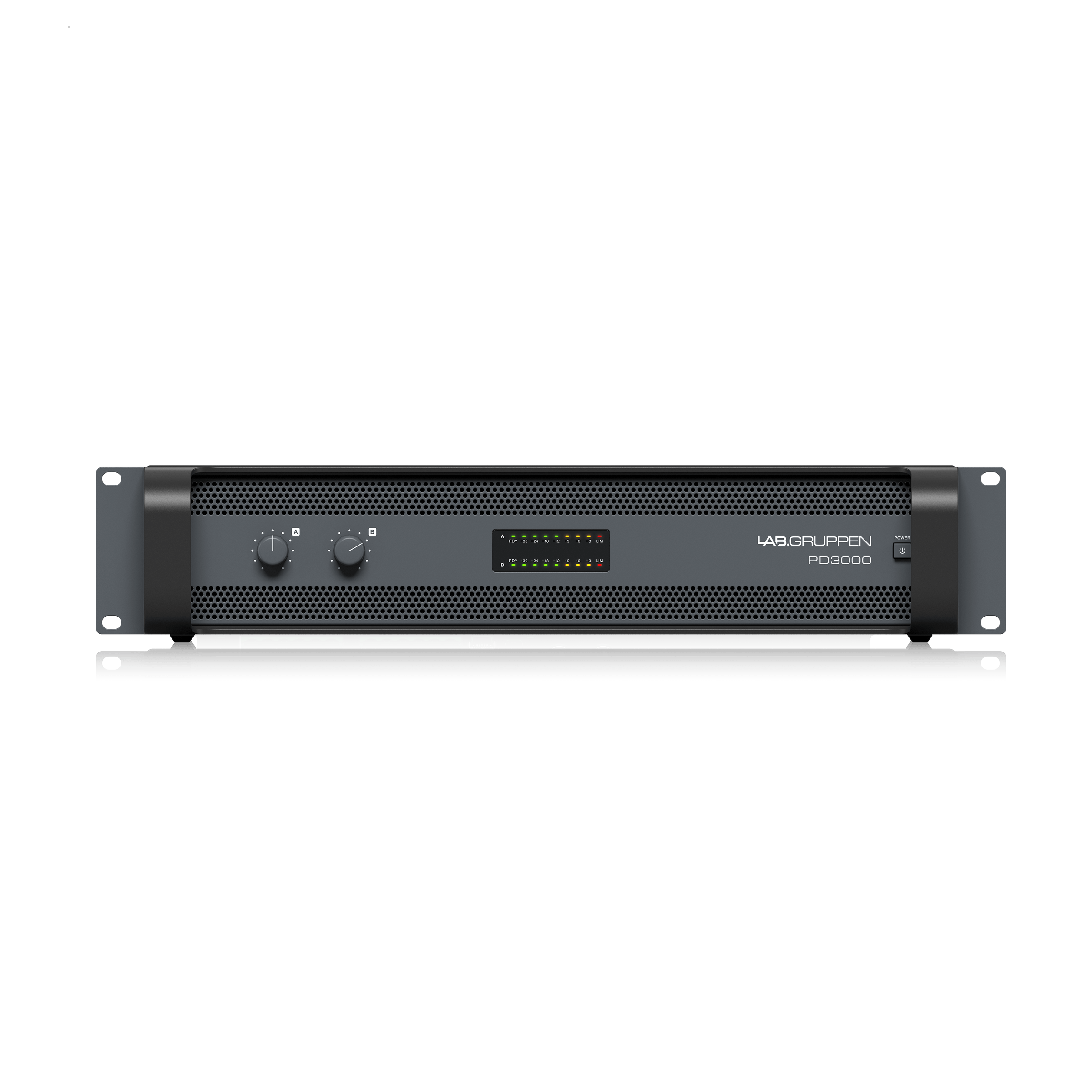 | Signal, per channel | -30 dB, -24 dB, -18 dB, -12 dB, -9 dB, -6 dB, -3 dB, LEDs lit green/orange |