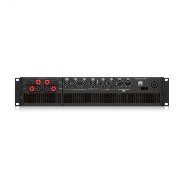 12,000-Watt Amplifier with 4 Flexible Output Channels on Binding Post Connectors and Lake Digital Signal Processing and Digital Audio Networking for Touring Applications