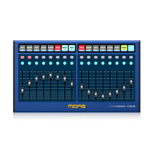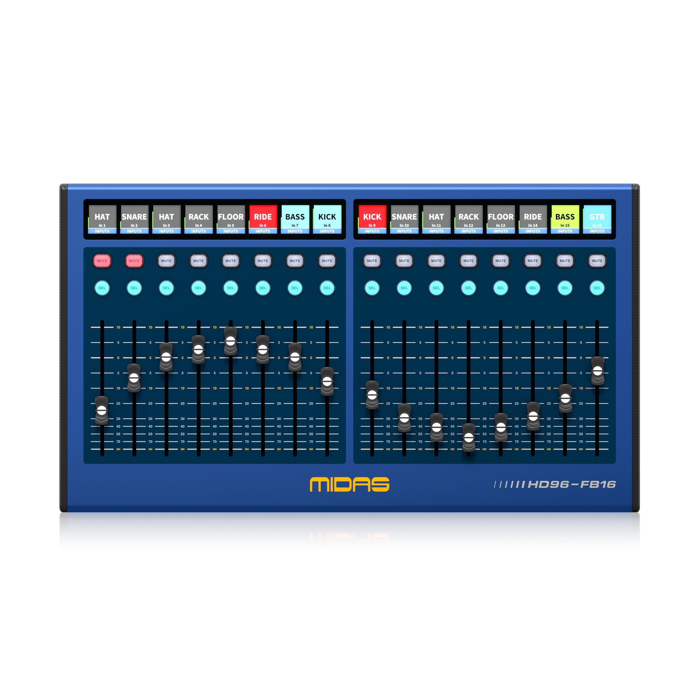 - 16 channel control surface with individual Fader, Mute, Select and Channel Information Display