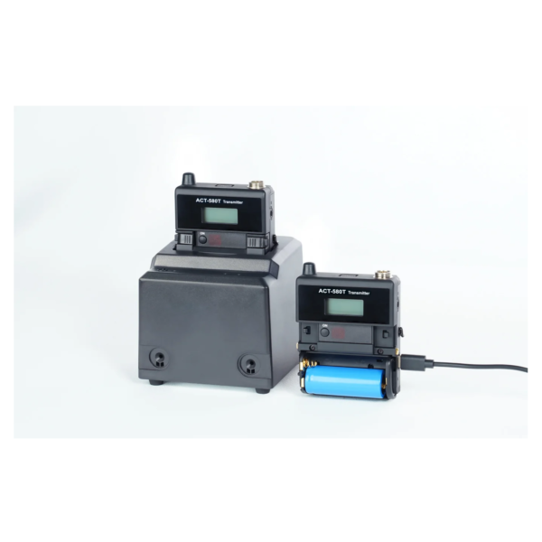 ACT-580T 為 5.8 GHz 數位佩戴式發射器,配備金屬腰夾與 USB-C 充電,支援 AA 或 18500 鋰電池供電。可搭配領夾或頭戴式麥克風,輸出 48 kHz/24-bit 清晰穩定的音質,適合演講與演出。