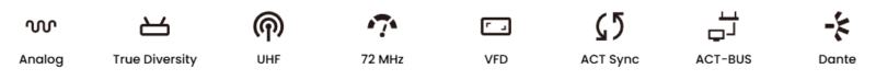 - 可搭配 ACT-700 系列手握式與佩戴式發射器,亦相容 BC-100WT 鵝頸式麥克風發射器,滿足各種應用需求。