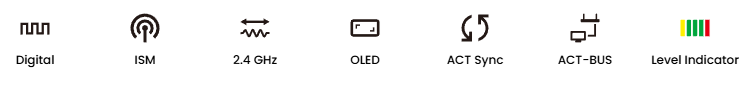 - 每組頻道可獨立設定 1~64 組識別碼,搭配 ACT 自動對頻,迅速完成發射與接收配對。