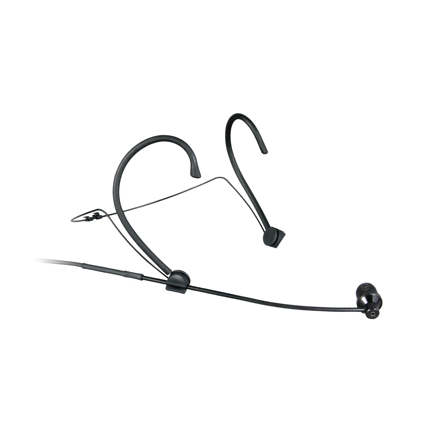 Black cardioid headworn microphone featuring a lightweight frame and a 10 mm condenser capsule for clear, natural vocal pickup. Designed for stable, comfortable wear during presentations and stage performances.