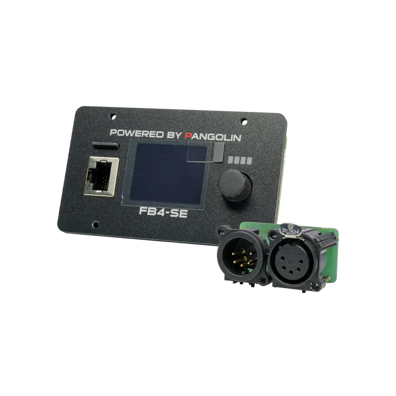 FB4 DMX is a new network hardware from Pangolin, that opens up a whole new world of possibilities for professional laser show control. FB4 DMX allows you to run your laser shows in a complete network setup (using standard CAT5 or CAT6 cable). It can also be controlled using DMX or ArtNet. And it features on-board SD card memory (for automatic show playback). You can operate FB4 DMX from a lighting console, PC, or in auto-mode. And the full color OLED display on FB4 DMX also provides control over a variety of projector settings (including colors, safety, geometric correction and more). FB4 DMX also comes with the award-winning QuickShow laser control software absolutely FREE.