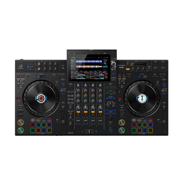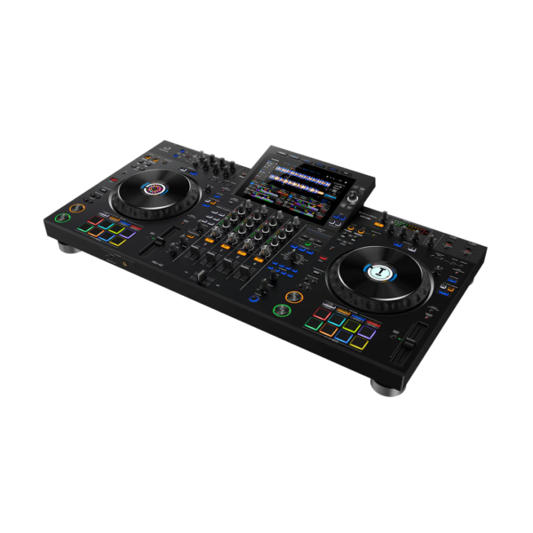 - Multicolor Jog Ring: Each jog wheel is surrounded by a customizable which can be configured to display different colors according to the according to the DJ’s preferences. This ring also serves as a visual cue, indicating essential essential information such as playback status or track position. At this element adds a striking visual aesthetic, ideal for captivating audiences during live performances.