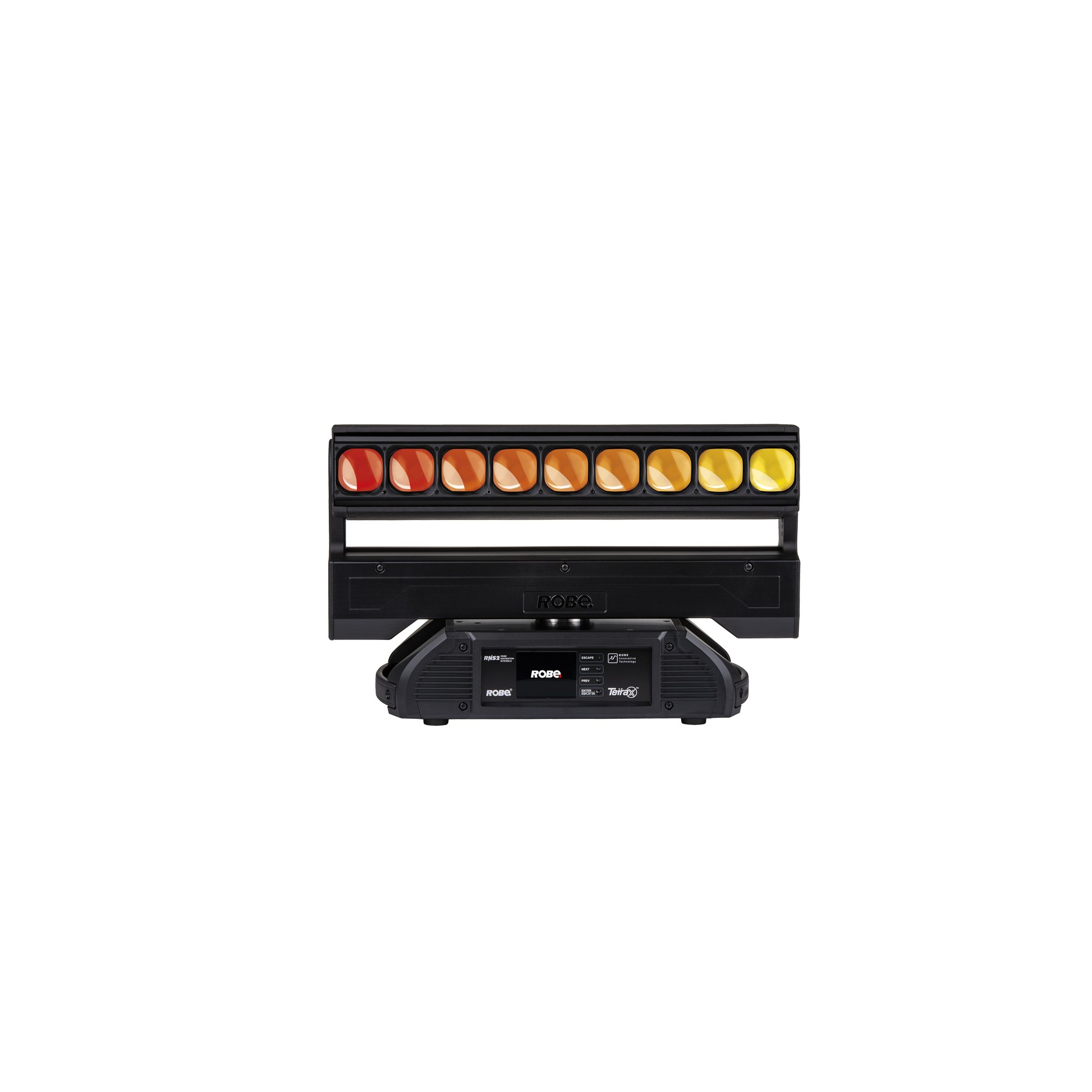 • Setting & Addressing: QVGA Robe touch screen with battery backup, gravitation sensor for auto screen positioning, operation memory service log with RTC, stand-alone operation with 3 editable programs (each up to 88 steps), built-in analyser for easy fault finding