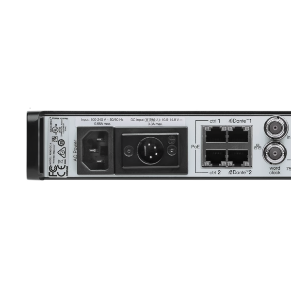 • Front panel headphone jack enables Dante™ Cue and Dante™ Browse monitoring