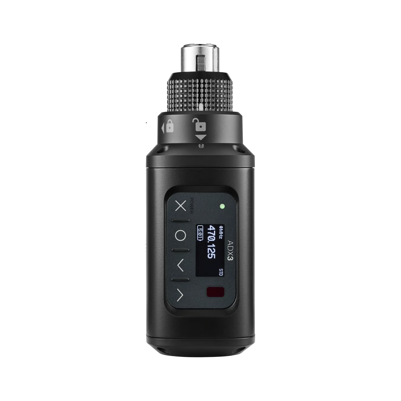 Leave the boom mic, plant mic, and interview mic exactly where they are and make necessary transmitter adjustments from the convenience of your cart, bag, camera, or truck. Axient Digital ADX3 plug-on transmitter with ShowLink provides comprehensive, real-time control of all transmitter parameters from the mix position. ADX3 plug-on transmitter features a secure XLR connector design, support for both Shure SB900-series rechargeable and AA batteries, and simple, user-friendly controls and menus.