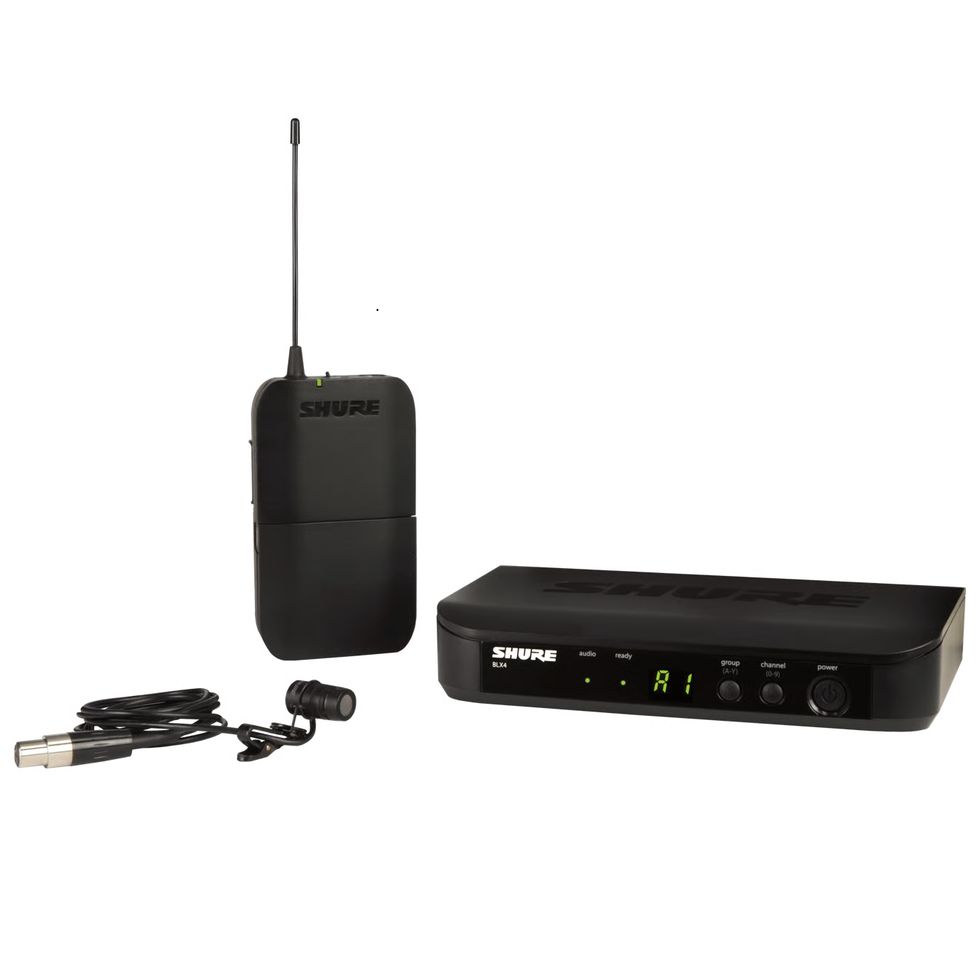 The Shure BLX14/W85 Wireless Presenter System combines professional-quality sound with simple setup and and up to 14 hours battery life for legendary audio performance right out of the box. The system includes BLX4 tabletop single-channel receiver, WL185 lavalier microphone with BLX1 bodypack transmitter, lavalier clip, power supply, 2 AA batteries, windscreens, and user guide.