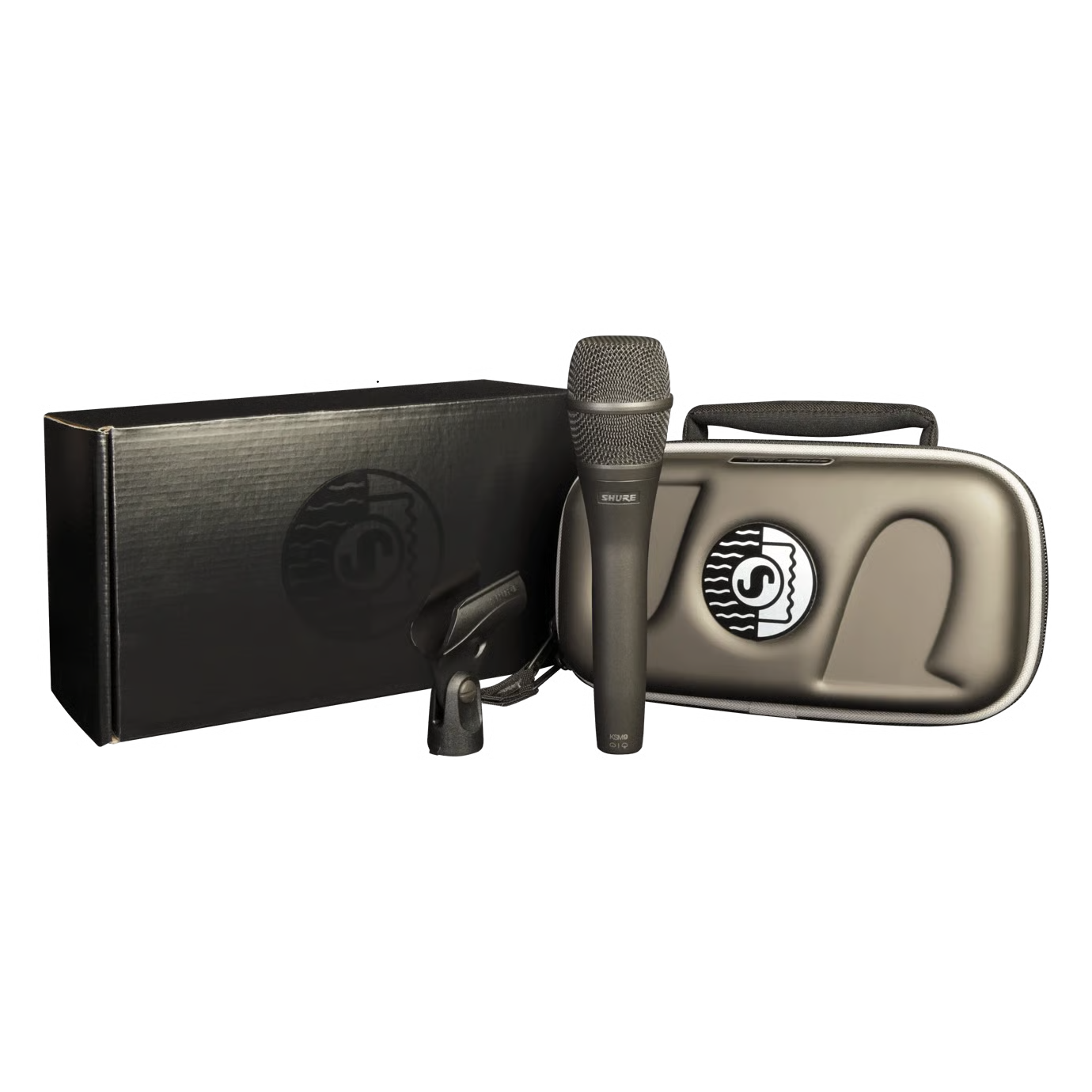 Cardioid condenser vocal microphone offers a dual diaphragm and switchable polar patterns to deliver precise vocal reproduction. It features a dual Mylar diaphragm design, a shock mount, gold-plated connectors, and an aluminum carrying case.