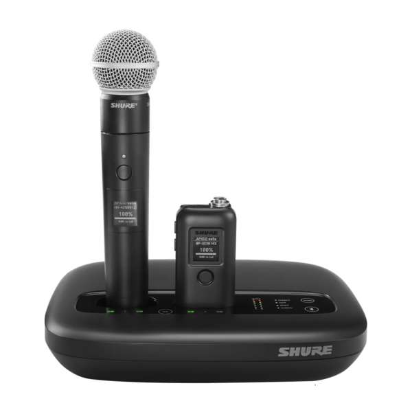 The MXW2X/SM58® rechargeable handheld transmitter is ideal for presenters who prefer to hold a microphone or to pass around for Q and A. The SM58 dynamic microphone’s cardioid pickup pattern reduces feedback and room noise. The transmitter operates for up to 25 hours with the included SB908 lithium battery pack and recharges quickly. Compatible with Microflex Wireless neXt systems.