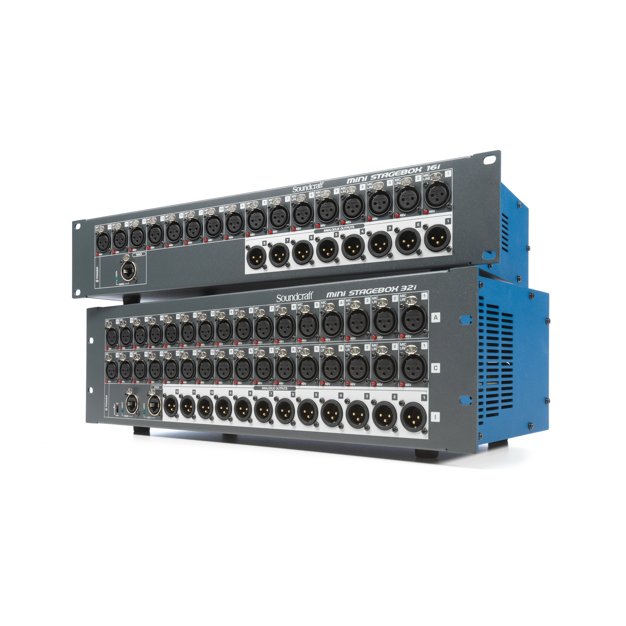 Soundcraft Mini Stagebox 32i and 16i combine high-quality components with a streamlined design, making it easy to add multiple channels of remote-controlled I/O to your Si-series mixing console. The Studer-designed mic preamps provide exceptional sound quality, while the compact form factor offers easy transport and fast configuration. Ideal for live engineers, houses of worship, bands, club owners and corporate installations, Soundcraft Mini Stageboxes allow you to replace heavy, expensive analog snakes with a single RJ45 Cat5 style Ethernet cable.
