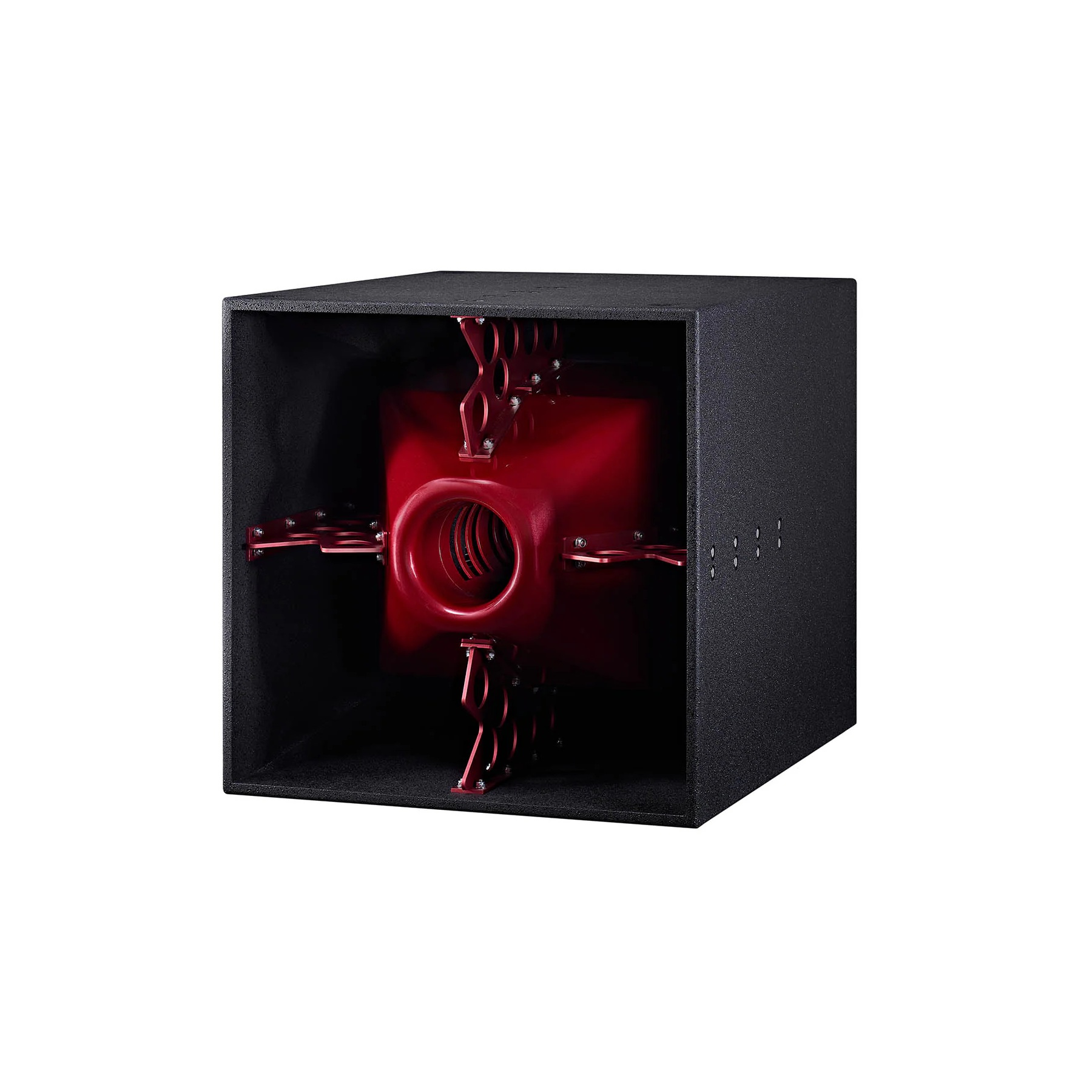 The Void Acoustics Nexus Q delivers unparalleled upper bass frequencies via its enhanced enclosure design. Four 12″ transducers use a front-loaded horn to achieve high efficiency and a rear port with a newly developed ‘pressure gradient’ arrangement.