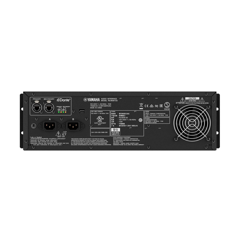 This high-performance I/O rack features 16 analog inputs and 8 analog outputs, and is compatible with Yamaha CL and QL series consoles as well as the RIVAGE PM series. The Rio1608-D2 connects directly to Dante digital audio networks, allowing flexible system configuration. Dual power supply units are built in for high reliability, and a character/graphic display offers easy visual confirmation.